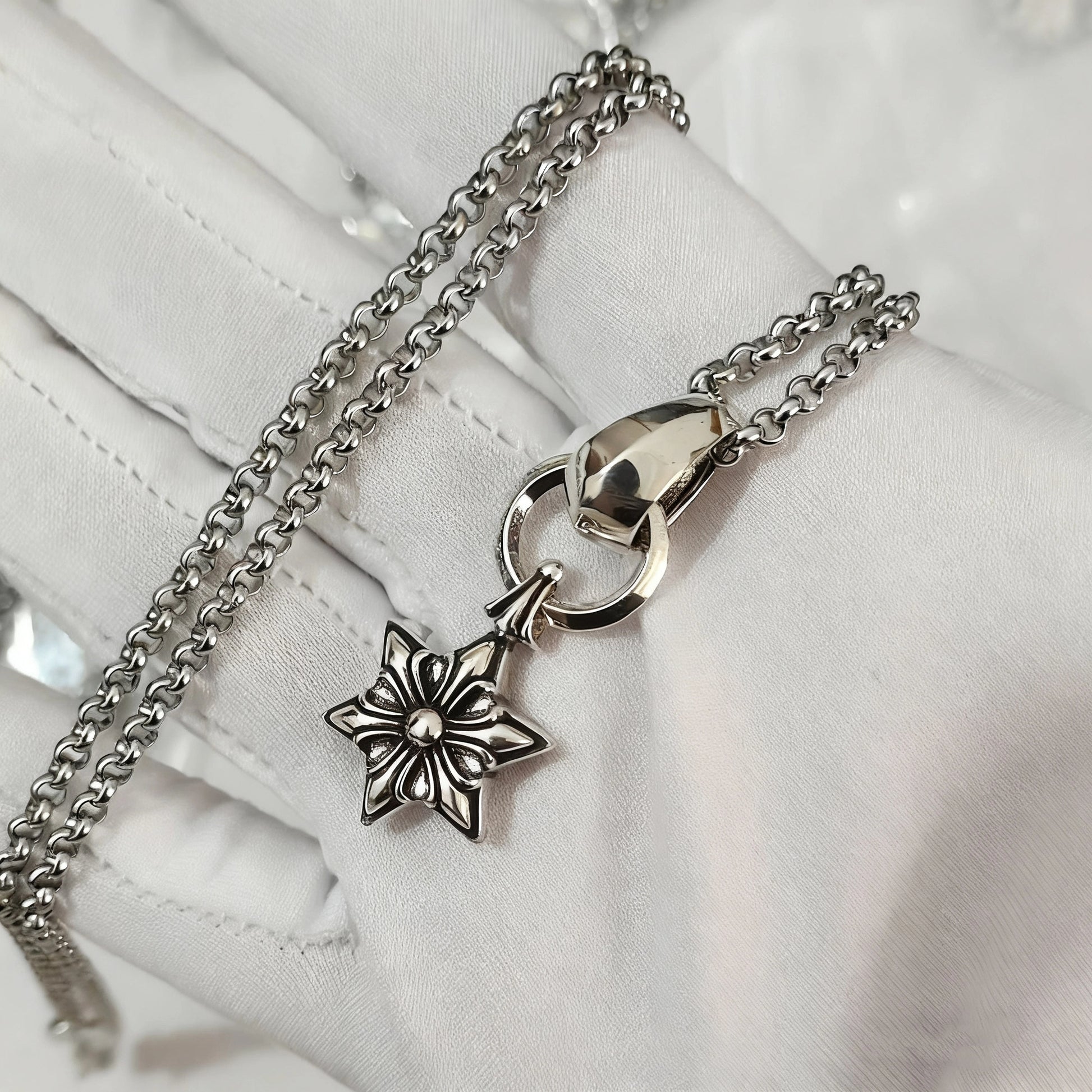 Cross necklace hexagonal star sword boat anchor pendant paired with letter flame pearl chain